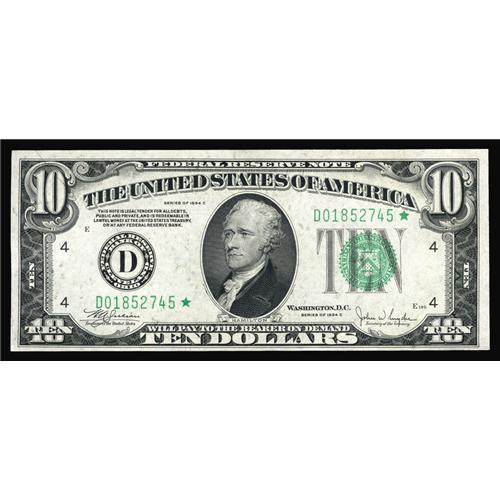 <B>Fr. 2008-D* $10 1934C Federal Reserve Note. Choice Crisp Uncirculated.</B></I><BR>A fresh and attractive example of this better star.