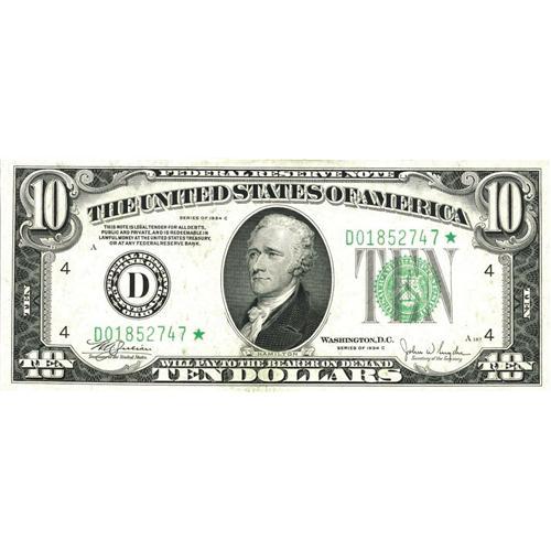 <B>Fr. 2008-D* $10 1934C Federal Reserve Note. Gem Crisp Uncirculated.</B></I><BR>A crackling fresh star example which has the look of a note printed this morning. The Oakes catalogue value of $400 in CU will likely be easily surpassed.