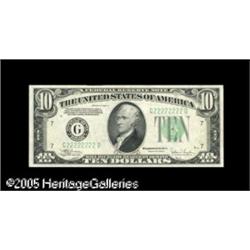 <B>Fr. 2008-G $10 1934C Federal Reserve Note. Choice Crisp Uncirculated.</B></I><BR>Only a minor handling indication keeps this $10 1934C solid serial G2222222D from the Gem category. Lot:16032
