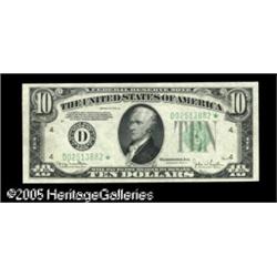 <B>Fr. 2009-D* $10 1934D Federal Reserve Note. Extremely Fine.</B></I><BR>A three fold EF which retains full original paper body.<BR><I>Acquired from Harry Jones.</B></I> Lot:16036