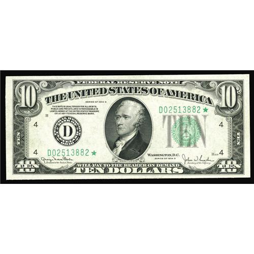 Fr. 2009-D* $10 1934D Federal Reserve Star Note. Choice Fr. 2009-D* $10 1934D Federal Reserve Note.