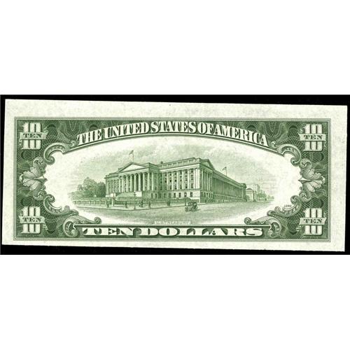 <B>Fr. 2009-D* $10 1934D Federal Reserve Note. Choice Crisp Uncirculated.</B></I><BR>Embossing protrudes from the colorful surfaces of this tough replacement note.