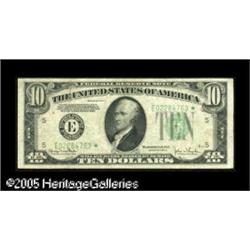 <B>Fr. 2009-E* $10 1934D Federal Reserve Note. Fine-Very Fine.</B></I><BR>Only one star serial number is documented by Oakes for this Friedberg number. That serial number belongs to the note we offer here tonight. Lot:16037