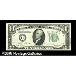 <B>Fr. 2009-G* $10 1934D Federal Reserve Note. About Uncirculated.</B></I><BR>A single vertical fold keeps this crispy note from a higher grade.<BR><I>Acquired from Harry Jones.</B></I> Lot:16038