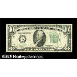 <B>Fr. 2009-L* $10 1934D Federal Reserve Note. Fine.</B></I><BR>This San Fran star makes its debut tonight, as the Oakes tome does not have a single star serial number listed. Lot:16040