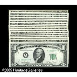<B>Fr. 2010-A-L (15) $10 1950 Narrow Federal Reserve Notes. Complete Regular Block Set. Choice Crisp Uncirculated or Better.</B></I><BR>Thirteen notes comprise a regular block set of Narrows. This lot includes an extra C-A and an extra L-A note. Also, two notes are outside of the assigned grade. They are the B-C note with a trace of handling, and one L-A note which grades Fine.<BR> 15 notes Lot:16042