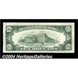 Fr. 2010-D* $10 1950 Federal Reserve Note. Superb Gem Crisp Uncirculated.An utterly superb note in all respects, as this scarce star is well nigh perfect. The Oakes catalogue value of $600 is likely to be easily surpassed before the bidding ends here. <BR><BR><B>Important notice:</B> Heritage usually auctions material at the rate of 200-250 lots per hour. On some occasions eBay Live bid software or the Internet may not be able to keep up with the pace of the auction. We recommend placing a realistic absentee bid now as insurance to avoid disappointment. Occasionally the auctioneer may eliminate or reject an eBay Live bid, and the auctioneer may also reopen a lot after the close of the eBay live bidding (usually because we missed an audience bid), and may reject your bid even if it shows you as the winning bidder. By bidding via eBay Live, you agree that Heritage may award the lot to another bidder at its sole discretion under the circumstances described above or any other reasonable circumstances. Since eBay bids are not shown to us until we open the lot on the floor, we treat those bids just like floor bids. In most cases the floor responds before the eBay bid is presented to us, due to Internet lag time, so for consistency we have made it a policy that floor bids are always considered first over tie eBay live bids. Also please note that all Heritage lots purchased through eBay Live carry a 20% Buyer's Premium. Please make sure you read the Terms and Conditions before you bid. <BR><BR><B>IMPORTANT ANNOUNCEMENT ABOUT RESERVES:</B> Heritage now divulges all reserves on its web site 7 days before every auction. If you want to know whether the reserve on this lot has been met, and if not, what the reserve amount is, please visit this lot page on the HeritageCoin.com web site, or email: bid@HeritageGalleries.com