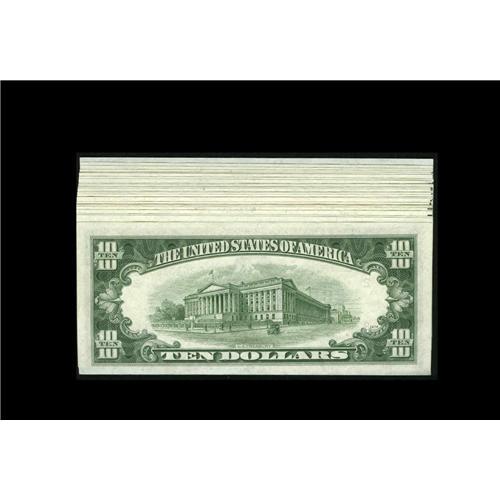 <B>Fr. 2011-B $10 1950A Federal Reserve Notes. Twenty-eight Examples. Choice Crisp Uncirculated.</B></I><BR>Each note crackles as you count through this closely numbered grouping that came originally from the same pack.<BR>
