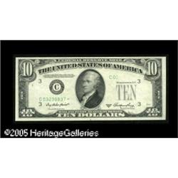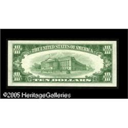 <B>Fr. 2011-C* $10 1950A Federal Reserve Note. Gem New.</B></I><BR>An obstruction has prevented most of the right-hand serial number, and 99% of the green seal, from printing on this 1950A* $10. Lot:15356