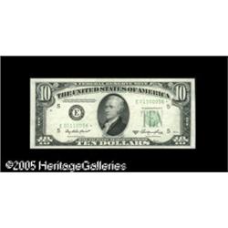 <B>Fr. 2011-E* $10 1950A Federal Reserve Note. Choice Crisp Uncirculated.</B></I><BR>This excessively rare Star mismatch is found on this crisp and wonderfully embossed example. This lot should see some serious bidder attention before realizing somewhere in the neighborhood of... Lot:15212