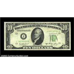Fr. 2011-J $10 1950A Federal Reserve Note. Choice Crisp Uncirculated. The reverse is shifted down, s
