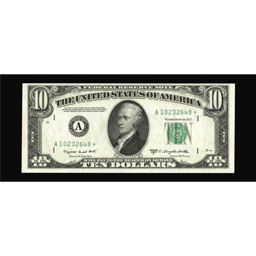 <B>Fr. 2013-A* $10 1950C Federal Reserve Note. Choice Crisp Uncirculated.</B></I><BR>A fresh Boston star kept from Gem status by a top margin not quite wide enough to merit the higher grade.