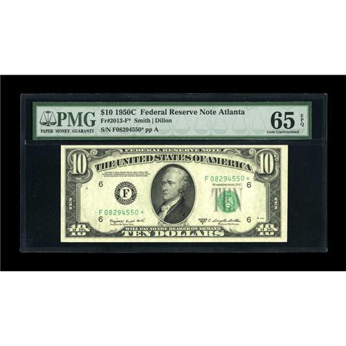 Fr. 2013-F* $10 1950C Federal Reserve Note. PMG Gem Unc