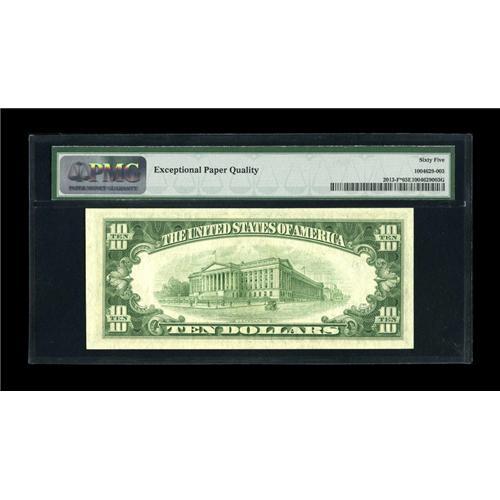 <B>Fr. 2013-F* $10 1950C Federal Reserve Note. PMG Gem Uncirculated 65 EPQ.</B></I><BR>This is the second of the quartet offered here, with this piece boasting a bit better margins and equally as nice paper quality.<BR><BR><b>Shipping:</b> Coins & Currency (<a target="_blank" href="http://www.heritageauctions.com/common/shipping.php">view shipping information</a>)