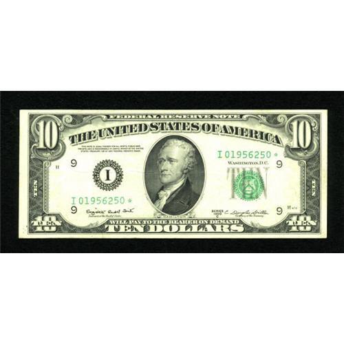 <B>Fr. 2013-I* $10 1950C Federal Reserve Note. Very Fine.</B></I><BR> Only 720,000 replacement notes were printed for this district. A pleasing lightly circulated example which is only the fourth auctioned by us in six years.<BR><BR><b>Shipping:</b> Coins & Currency (<a target="_blank" href="http://www.heritageauctions.com/common/shipping.php">view shipping information</a>)