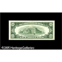 <B>Fr. 2014-G $10 1950-D Federal Reserve Note About Uncirculated.</B></I> A rare and likely unique retained obstruction note with the obstruction a piece of green plastic film which is still attached to the note. Lot:15451