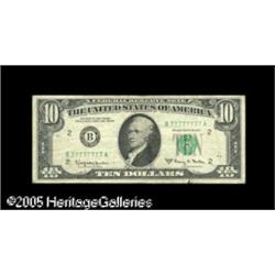 <B>Fr. 2017-B $10 1963A Federal Reserve Note. Very Fine.</B></I><BR>Solid serial B77777777A. Solid 7's are one of the more popular options with specialists in the fancy serial number fraternity Lot:16059
