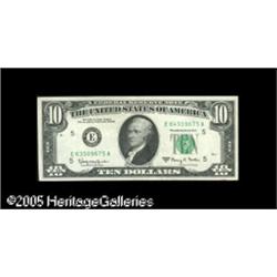 <B>Fr. 2017-E $10 1963A Federal Reserve Note. About Uncirculated.</B></I><BR>Mismatched (by one digit) serial number E63509675A/E64509675A. Lot:15213
