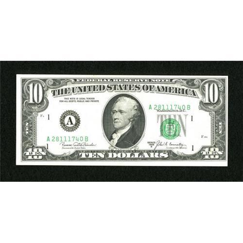 <B>Fr. 2020-A $10 1969B Federal Reserve Note. Choice Crisp Uncirculated.</B></I><BR> A minor shift is noticed on this pleasing note from a tougher issue.<BR><BR><b>Shipping:</b> Coins & Currency (<a target="_blank" href="http://www.heritageauctions.com/common/shipping.php">view shipping information</a>)
