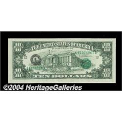Fr. 2024-L $10 1977A Federal Reserve Note. Gem Crisp Uncirculated. A crackling fresh example with the third printing on the reverse. <BR><BR><B>Important notice:</B> Heritage usually auctions material at the rate of 200-250 lots per hour. On some occasions eBay Live bid software or the Internet may not be able to keep up with the pace of the auction. We recommend placing a realistic absentee bid now as insurance to avoid disappointment. Occasionally the auctioneer may eliminate or reject an eBay Live bid, and the auctioneer may also reopen a lot after the close of the eBay live bidding (usually because we missed an audience bid), and may reject your bid even if it shows you as the winning bidder. By bidding via eBay Live, you agree that Heritage may award the lot to another bidder at its sole discretion under the circumstances described above or any other reasonable circumstances. Since eBay bids are not shown to us until we open the lot on the floor, we treat those bids just like floor bids. In most cases the floor responds before the eBay bid is presented to us, due to Internet lag time, so for consistency we have made it a policy that floor bids are always considered first over tie eBay live bids. Also please note that all Heritage lots purchased through eBay Live carry a 20% Buyer's Premium. Please make sure you read the Terms and Conditions before you bid. <BR><BR><B>IMPORTANT ANNOUNCEMENT ABOUT RESERVES:</B> Heritage now divulges all reserves on its web site 7 days before every auction. If you want to know whether the reserve on this lot has been met, and if not, what the reserve amount is, please visit this lot page on the HeritageCoin.com web site, or email: bid@HeritageGalleries.com
