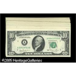 <B>Fr. 2025-A, B (4), C (2), D, E (2), F (2), G (3), H (2), I, K, L (2) $10 1981 Federal Reserve Notes. Near Complete Regular Block Set. Choice Crisp Uncirculated or Better.</B></I><BR><B>Fr. 2025-A*, E*, F*, G*, L* $10 1981 Federal Reserve Notes. Choice Crisp Uncirculated or Better.</B></I><BR><B>Fr. 2026-A-J (12) $10 1981A Federal Reserve Notes. Near Complete Regular Block Set. Choice Crisp Uncirculated or Better.</B></I><BR><B>Fr. 2026-E*, F* $10 1981A Federal Reserve Notes. Choice Crisp Uncirculated or Better.</B></I><BR>Our consignor strived for completeness, and not too many regular blocks are missing from these two series. The 1981A A-B note grades Fine, while the H00000691A note grades XF.<BR> 40 notes Lot:16069