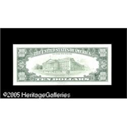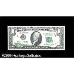 <B>Fr. 2025-B $10 1981 Federal Reserve Note. Gem New.</B></I><BR>There is a small but bold back-to-face offset at the bottom left of this pristine note. Lot:15330