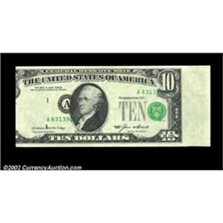 Fr. 2027-A $10 1985 Federal Reserve Note. Choice Crisp Uncirculated.Although the back and the third printings are right on, the first face printing is skewed way too far to the left. A dramatic error that should easily reach the high end of our estimate of. . . Important notice: We expect to be auctioning lots at the rate of 200-250 per hour. Sometimes eBay Premier live bid software cannot keep up with that pace, so we strongly recommend that you place a realistic proxy bid now as insurance to avoid disappointment. Also please note that all Heritage/CAA lots purchased through eBay Premier carry a 20% Buyer's Premium. Please make sure you read the Terms and Conditions.