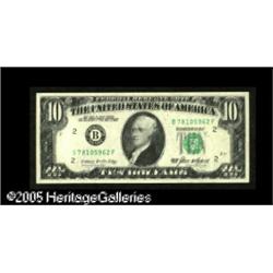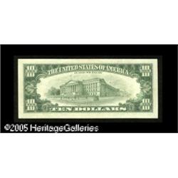 <B>Fr. 2027-B $10 1985 Federal Reserve Note. About New.</B></I><BR>A dramatic doubled first face printing note with a far greater separation between the two printings than what is normally seen. The note has some handling and four pinholes, but no signs of actual circulation. Lot:15415