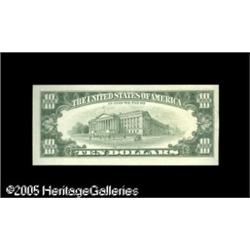 <B>Fr. 2027-B $10 1985 Federal Reserve Note Gem Crisp Uncirculated.</B></I> A $10 retained kraft paper obstruction error with both the tape and the kraft paper having received part of the third printing. The tape here is attached only to the top left end of the face, and does not touch the reverse. Lot:15454