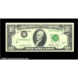 Fr. 2027-F $10 1985 Federal Reserve Note. Very Choice Crisp Uncirculated.The third printing is shifted a touch too high, more so on the left end than the right. Important notice: We expect to be auctioning lots at the rate of 200-250 per hour. Sometimes eBay Premier live bid software cannot keep up with that pace, so we strongly recommend that you place a realistic proxy bid now as insurance to avoid disappointment. Also please note that all Heritage/CAA lots purchased through eBay Premier carry a 20% Buyer's Premium. Please make sure you read the Terms and Conditions.