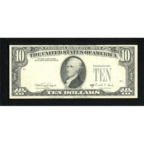 <B>Fr. 2028-B $10 1988A Federal Reserve Note. Crisp Uncirculated.</B></I><BR> An obstruction has forever kept the seals and serial numbers from this note, but the excellent punch through embossing remains.<BR><BR><b>Shipping:</b> Coins & Currency (<a target="_blank" href="http://www.heritageauctions.com/common/shipping.php">view shipping information</a>)