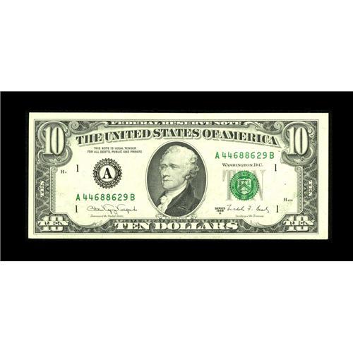 <B>Fr. 2029-A $10 1988A Federal Reserve Note. About Uncirculated.</B></I><BR>The back printing is doubled on this high grade example, which was formerly part of the Taylor Family collection.<BR><BR><b>Shipping:</b> Coin/Currency (<a target="_blank" href="http://www.heritageauctions.com/common/shipping.php">view shipping information</a>)