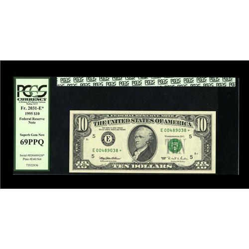 Fr. 2032-E* $10 1995 Federal Reserve Note. PCGS Superb Fr. 2032-E* $10 1995 Federal Reserve Note. PC