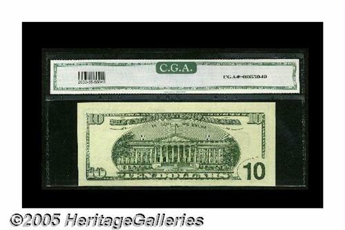 <B>Fr. 2033-L $10 1999 Federal Reserve Note. CGA Gem Uncirculated 65.</B></I><BR>This is your last chance to get a quality low number from this mini-run.