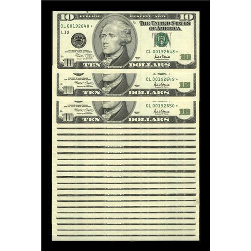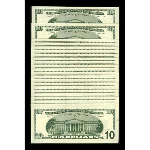 <B>Fr. 2036-L* $10 2001 Federal Reserve Notes. 22 Consecutive Examples. Choice Crisp Uncirculated</B></I>.<B></B></I><BR> A little teller handling is noticed at upper left on every note in this nicely margined run.<BR><BR><b>Shipping:</b> Coins & Currency (<a target="_blank" href="http://www.heritageauctions.com/common/shipping.php">view shipping information</a>)