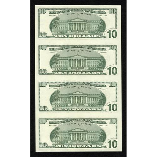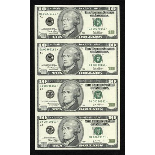 <B>Fr. 2037-D* $10 2003 Federal Reserve Star Notes. Uncut Sheet of Four. Gem Crisp Uncirculated.</B></I><BR> This uncut sheet of four is stored in a "Black Angus Bankers Portfolio" with a photo of Alexander Hamilton. This $10 FRN series is no longer available from the BEP in uncut form. This product was distributed by the World Reserve Monetary Exchange. <BR><BR><b>Shipping:</b> Coins & Currency (<a target="_blank" href="http://www.heritageauctions.com/common/shipping.php">view shipping information</a>)