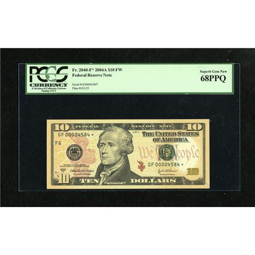 Fr. 2040-F* $10 2004A Federal Reserve Note. PCGS