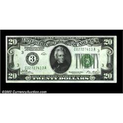 Fr. 2050-C $20 1928 Federal Reserve Note. Gem Crisp Uncirculated. One of a small run of these early Feds from an old time collection. This piece is crackling fresh, fully embossed, and virtually as nice as the day it was printed. This lovely piece will likely bring somewhat more than the Oakes valuation of $250. Important notice: We expect to be auctioning lots at the rate of 200-250 per hour. Sometimes eBay Premier live bid software cannot keep up with that pace, so we strongly recommend that you place a realistic proxy bid now as insurance to avoid disappointment. Also please note that all Heritage/CAA lots purchased through eBay Premier carry a 20% Buyer's Premium. Please make sure you read the Terms and Conditions.