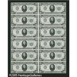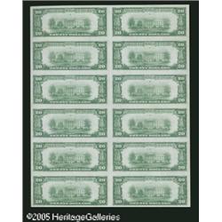 <B>Fr. 2050-C $20 1928 Federal Reserve Notes. Uncut Sheet of 12. Crisp Uncirculated.</B></I><BR>A perfect mate to the similarly numbered $10 Philadelphia sheet offered above, and just as rare. There is a fold down the center and some corner folds, along with a bit of handling, but the sheet is vividly colored and quite attractive. Our consignor obtained it from our May, 1999 sale, where it realized $16,500, and it should easily be worth that and more this evening. Lot:16084