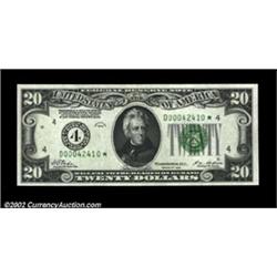 Fr. 2050-D* $20 1928 Federal Reserve Note. Choice Crisp Uncirculated.A bright and vividly printed ex