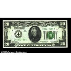 Fr. 2050-D $20 1928 Federal Reserve Note. Choice Crisp Uncirculated.The back centering is just a trifle off the gem standard. Catalogue value in Uncirculated is now $200 in Oakes for this district. Important notice: We expect to be auctioning lots at the rate of 200-250 per hour. Sometimes eBay Premier live bid software cannot keep up with that pace, so we strongly recommend that you place a realistic proxy bid now as insurance to avoid disappointment. Also please note that all Heritage/CAA lots purchased through eBay Premier carry a 20% Buyer's Premium. Please make sure you read the Terms and Conditions.