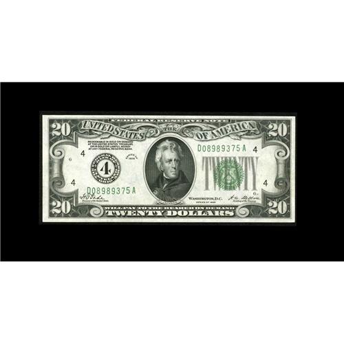 <B>Fr. 2050-D $20 1928 Federal Reserve Note. Gem Crisp Uncirculated.</B></I><BR>A crackling fresh and fully original example with bright colors and near perfect centering.