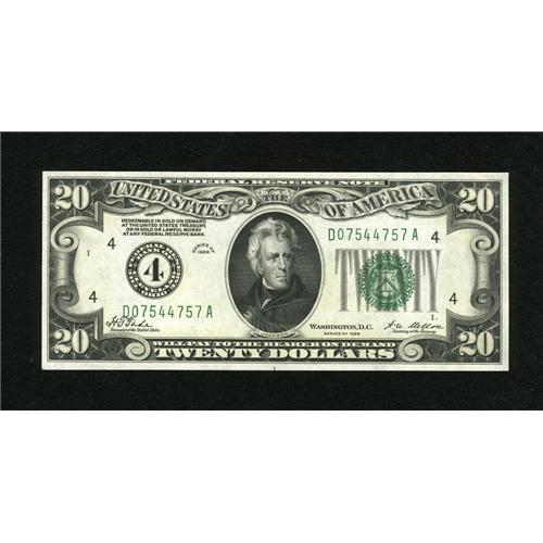 <B>Fr. 2050-D $20 1928 Federal Reserve Note. Very Choice Crisp Uncirculated.</B></I><BR>This is a strictly original and well embossed numbered district Cleveland note that has superb eye appeal but with a smaller left margin.<BR><BR><b>Shipping:</b> Coins & Currency (<a target="_blank" href="http://www.heritageauctions.com/common/shipping.php">view shipping information</a>)