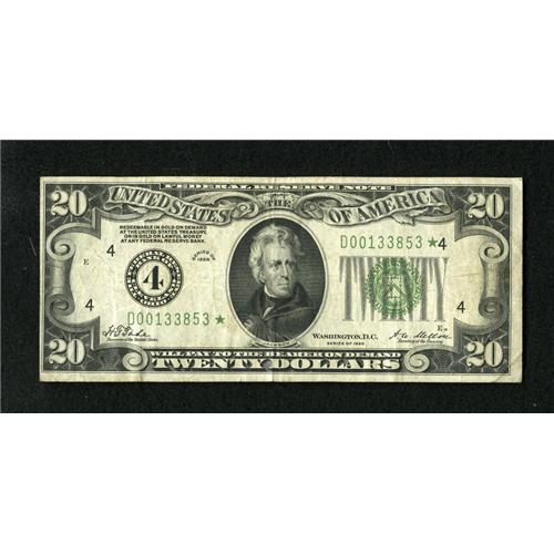 Fr. 2050-D* $20 1928 Federal Reserve Note. Very