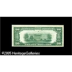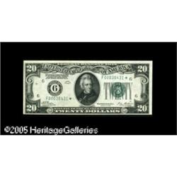<B>Fr. 2050-F* $20 1928 Federal Reserve Note. Extremely Fine-About Uncirculated.</B></I><BR>Another extremely rare district for stars, with this example one of the highest grade pieces recorded. It appears new until closely examined. Lot:16088