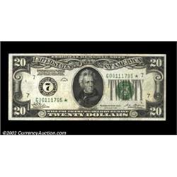 Fr. 2050-G* $20 1928 Federal Reserve Note. About Uncirculated.A much in demand series for stars, especially in high grade. Surprisingly, this is the only district in the series for which the new Oakes reference lists only one serial number. Important notice: We expect to be auctioning lots at the rate of 200-250 per hour. Sometimes eBay Premier live bid software cannot keep up with that pace, so we strongly recommend that you place a realistic proxy bid now as insurance to avoid disappointment. Also please note that all Heritage/CAA lots purchased through eBay Premier carry a 20% Buyer's Premium. Please make sure you read the Terms and Conditions.