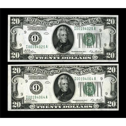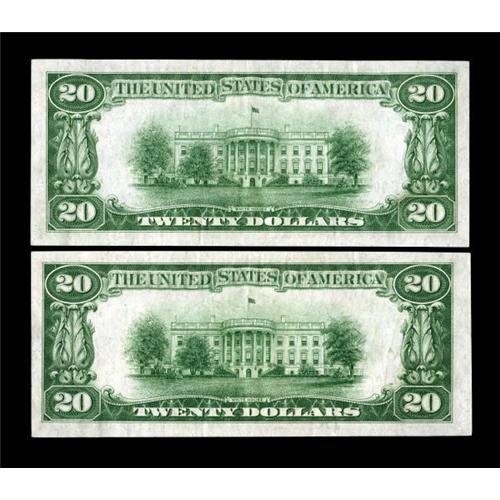 Fr. 2050-I $20 1928 Federal Reserve Notes. Two