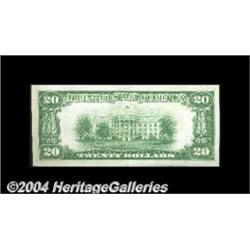 Fr. 2051-F $20 1928A Federal Reserve Note. Gem Crisp Uncirculated.A well centered beauty which looks and feels as though it were printed this afternoon. This is a note you will never worry about improving. <BR><BR><B>Important notice:</B> Heritage usually auctions material at the rate of 200-250 lots per hour. On some occasions eBay Live bid software or the Internet may not be able to keep up with the pace of the auction. We recommend placing a realistic absentee bid now as insurance to avoid disappointment. Occasionally the auctioneer may eliminate or reject an eBay Live bid, and the auctioneer may also reopen a lot after the close of the eBay live bidding (usually because we missed an audience bid), and may reject your bid even if it shows you as the winning bidder. By bidding via eBay Live, you agree that Heritage may award the lot to another bidder at its sole discretion under the circumstances described above or any other reasonable circumstances. Since eBay bids are not shown to us until we open the lot on the floor, we treat those bids just like floor bids. In most cases the floor responds before the eBay bid is presented to us, due to Internet lag time, so for consistency we have made it a policy that floor bids are always considered first over tie eBay live bids. Also please note that all Heritage lots purchased through eBay Live carry a 20% Buyer's Premium. Please make sure you read the Terms and Conditions before you bid. <BR><BR><B>IMPORTANT ANNOUNCEMENT ABOUT RESERVES:</B> Heritage now divulges all reserves on its web site 7 days before every auction. If you want to know whether the reserve on this lot has been met, and if not, what the reserve amount is, please visit this lot page on the HeritageCoin.com web site, or email: bid@HeritageGalleries.com