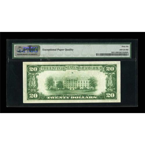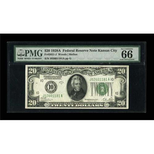 <B>Fr. 2051-J $20 1928A Federal Reserve Note. PMG Gem Uncirculated 66 EPQ.</B></I><BR> Perhaps one of the nicest third party examples from this issue around from the same run as the Schwartz plate note.<BR><BR><b>Shipping:</b> Coins & Currency (<a target="_blank" href="http://www.heritageauctions.com/common/shipping.php">view shipping information</a>)