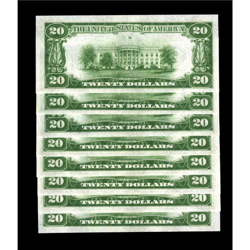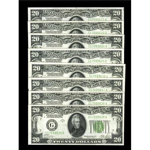 Fr. 2052-G $20 1928B Federal Reserve Notes. Eight Conse Fr. 2052-G $20 1928B Federal Reserve Notes.